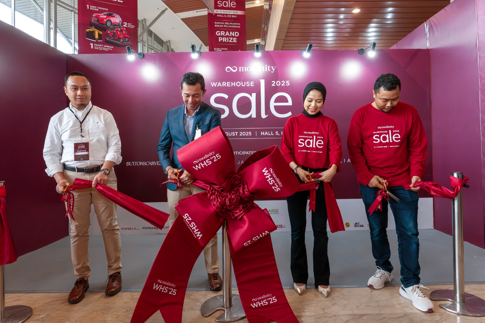 Tidak hanya menawarkan pengalaman belanja yang istimewa, Modinity Warehouse Sale 2025 menghadirkan hadiah grand prize yang spektakuler. Pengunjung berkesempatan membawa pulang satu unit Toyota Raize, dua unit Yamaha Fazzio, dan satu paket perjalanan Umrah bersama Buttonscarves Tour & Travel. Setiap harinya, ada juga door prize, termasuk iPhone dan emas, yang siap menambah semarak acara.