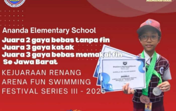 PEOPLENESIA.COM - Prestasi membanggakan kembali diraih oleh siswa SD Ananda Bekasi. Gabriella Dellana Gita Nugroho, siswi kelas 5A yang baru berusia 10 tahun, berhasil meraih gelar juara dalam Kejuaraan Renang Arena Fun Swimming Festival Series III – 2025 di tingkat Jawa Barat. Dalam ajang tersebut, Gabriella sukses membawa pulang: 1. Juara 2 Gaya Bebas Tanpa Fin (Medali Perak) 2. Juara 3 Gaya Katak (Medali Perunggu) 3. Juara 3 Gaya Bebas Memakai Fin [...]